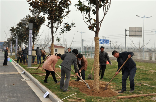 植樹現(xiàn)場,一派熱火朝天的勞動景象,大家熱情高漲、干勁十足,分工協(xié)作,默契配合,定行、鏟土、填坑、澆水,每道工序都進(jìn)行的十分細(xì)致、認(rèn)真。經(jīng)過一番辛勤勞動,共栽種廣玉蘭40余棵,一行行新栽下的玉蘭樹昂然挺立,在和煦的春風(fēng)中展現(xiàn)著蓬勃生機(jī)。