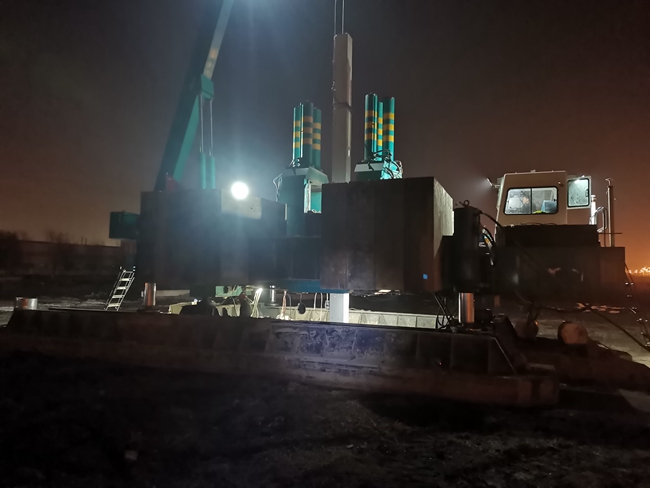 項目于2021年12月正式開工建設(shè),總樁長約4.7萬米。樁基工程是整個項目起步的關(guān)鍵工程,項目各參建單位緊密配合,面對時間緊、任務(wù)重、氣溫低、管控嚴等重重困難,施工不分晝夜,雨天依然堅持施工,最終確保了進度計劃的實現(xiàn)。
