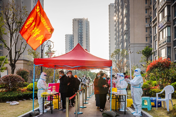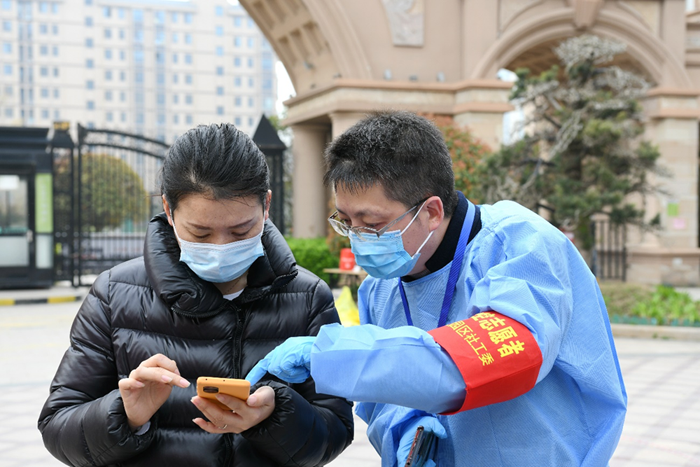 一群黨員“點(diǎn)位長(zhǎng)”,扛起疫情防控沉甸甸的責(zé)任 “請(qǐng)打開 ‘宿康寶’核酸檢測(cè)預(yù)約記錄,主動(dòng)出示給工作人員。”“請(qǐng)戴好口罩,保持一米線。”兩日來(lái),在園區(qū)翡翠藍(lán)灣小區(qū)核酸檢測(cè)點(diǎn),排隊(duì)等候的小區(qū)居民總能看到臂戴黨員志愿者袖標(biāo)的城發(fā)公司行政人事部兼合約造價(jià)部總經(jīng)理李桂志在人群中忙碌的身影。每次核酸檢測(cè)前,他統(tǒng)籌安排,早早做好現(xiàn)場(chǎng)布置;檢測(cè)過程中,他不停進(jìn)行安全提醒,及時(shí)指導(dǎo)待檢人員提前做好微信小程序“宿康寶”的注冊(cè)和預(yù)約登記,幫助現(xiàn)場(chǎng)群眾快速便捷完成核酸檢測(cè)。