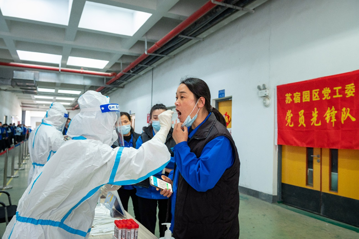 一支黨員先鋒隊(duì),全力打贏疫情防控阻擊戰(zhàn) 疫情就是命令。為有序開展園區(qū)大規(guī)模區(qū)域核酸檢測(cè)工作,園區(qū)機(jī)關(guān)、企事業(yè)單位黨員干部積極響應(yīng)黨工委號(hào)召,火速集結(jié),爭(zhēng)分奪秒開赴核酸檢測(cè)預(yù)定點(diǎn)位。從凌晨的物資準(zhǔn)備、早上5點(diǎn)的核酸檢測(cè),到夜間的“掃樓行動(dòng)”,忙碌地穿梭于樓棟之間的黨員突擊隊(duì)員,堅(jiān)決落實(shí)好“不落一戶,不漏一人”的防控要求。共產(chǎn)黨員、園區(qū)安委辦綜合協(xié)調(diào)與巡查督查處副處長(zhǎng)朱婷婷說:“在這個(gè)疫情防控的緊要時(shí)期,作為一名共產(chǎn)黨員,拉得出、打得響,是我對(duì)自己最基本的要求。”在履行防控職責(zé)同時(shí),黨員志愿者和醫(yī)護(hù)人員跨前一步,為社區(qū)獨(dú)居老人、行動(dòng)不便老人提供送檢上門等貼心服務(wù),受到群眾廣泛點(diǎn)贊。