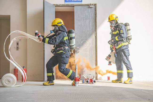 此次演練完全按照“真實模擬火場、現(xiàn)場領(lǐng)受任務(wù)、無預(yù)案戰(zhàn)斗展開”模式進行,災(zāi)情假設(shè)為B10二層服裝加工企業(yè)起火,該企業(yè)立即啟動自救預(yù)案并撥打消防報警電話。園區(qū)消防應(yīng)急救援大隊接警后,一次性調(diào)派2輛消防車11名消防戰(zhàn)斗員趕赴處置,演練過程中按照救人第一的指導(dǎo)思想,科學(xué)施救,內(nèi)攻滅火、內(nèi)攻搜救、外圍控火、緊急撤離等技戰(zhàn)術(shù)措施控制火勢,消滅火災(zāi)。