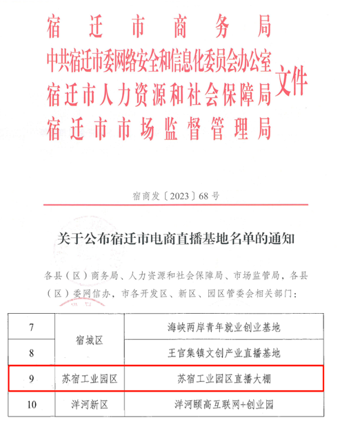 近日,由宿遷市商務局組織,各縣區(qū)參與的首批“宿遷市電商直播基地”評選結果揭曉,蘇宿電商園直播大棚成功入選首批“宿遷市電商直播基地”。