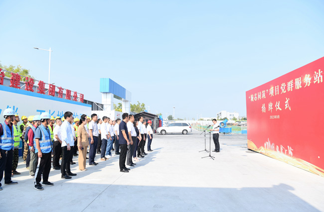 9月1日上午,城發(fā)公司“城芯同筑”項(xiàng)目黨群服務(wù)站揭牌儀式在園區(qū)智慧信息產(chǎn)業(yè)園項(xiàng)目部現(xiàn)場舉行,園區(qū)黨工委委員、管委會副主任、園區(qū)機(jī)關(guān)及直屬單位黨委書記崔廣全,園區(qū)黨工委委員、管委會副主任、園區(qū)國資國企黨委書記張漢華,城發(fā)公司管理層及全體黨員,五礦二十三冶華東分公司和江蘇華盛監(jiān)理公司黨員代表參加活動(dòng)。