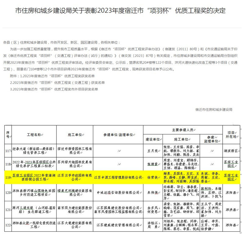近日,園區(qū)口袋公園項目——蘇宿工業(yè)園區(qū)2022年青海湖西路微公園工程榮獲2023年度宿遷市“項羽杯”優(yōu)質工程獎。
