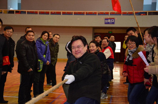 運(yùn)動會上妙趣橫生,運(yùn)動員們放下平日繁忙的工作,在運(yùn)動場上盡顯活力與激情,盡情綻放興奮的笑容。最后一項(xiàng)拔河比賽將運(yùn)動會推上了高潮,機(jī)關(guān)隊(duì)與國企隊(duì)兩軍對壘,機(jī)關(guān)、國企隊(duì)員個(gè)個(gè)憋足了勁,經(jīng)過三場激烈的“鏖戰(zhàn)”,機(jī)關(guān)隊(duì)最終贏得勝利。