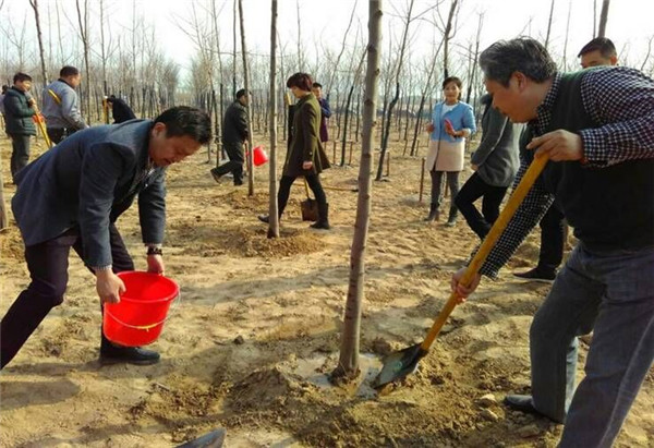 植樹過(guò)程中,參加植樹的人員個(gè)個(gè)熱情高漲、干勁十足,他們幾個(gè)人一組,扶直樹苗、揮鍬培土、踩實(shí)壓緊,不時(shí)還向身邊的園林綠化技術(shù)指導(dǎo)人員討教樹木種植、養(yǎng)護(hù)知識(shí),整個(gè)勞動(dòng)場(chǎng)面繁忙而有序。