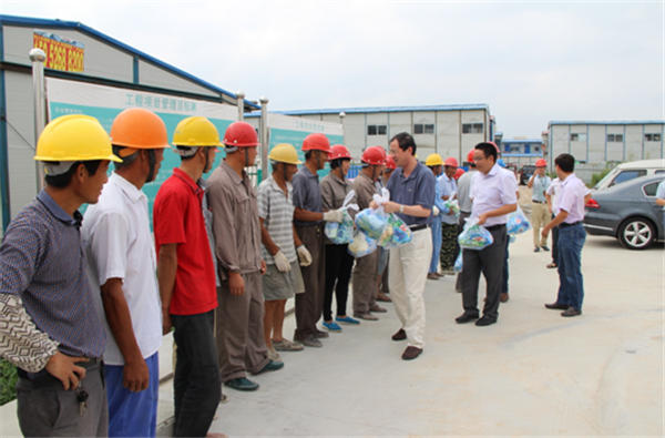 8月11日上午,園區(qū)黨工委委員、規(guī)劃建設(shè)局局長周原帶隊來到夢家園、許莊變、2014年市政二標(biāo)等項(xiàng)目工地,檢查防暑降溫措施落實(shí)情況,并慰問奮戰(zhàn)在高溫一線的建筑工人。