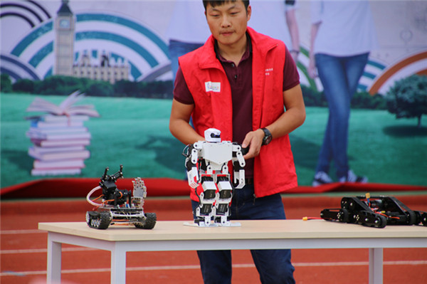 表演中,兩臺(tái)多軸飛機(jī)在場(chǎng)地作繞場(chǎng)及8字飛行,在飛行4分鐘后,隨著背景的高潮音樂響起,在空中打開了橫幅——“共創(chuàng)文明社區(qū),締造幸福家園?!彪S后,無(wú)論是機(jī)器人的介紹演示、固定翼無(wú)人機(jī)的拉煙表演還是直升機(jī)表演,又或是像真機(jī)空中格斗飛行,都讓同學(xué)們?cè)诨?dòng)和操作中充分感受到了科技的飛速發(fā)展,拓展了視野,更對(duì)航空模型制作產(chǎn)生了濃厚的興趣。